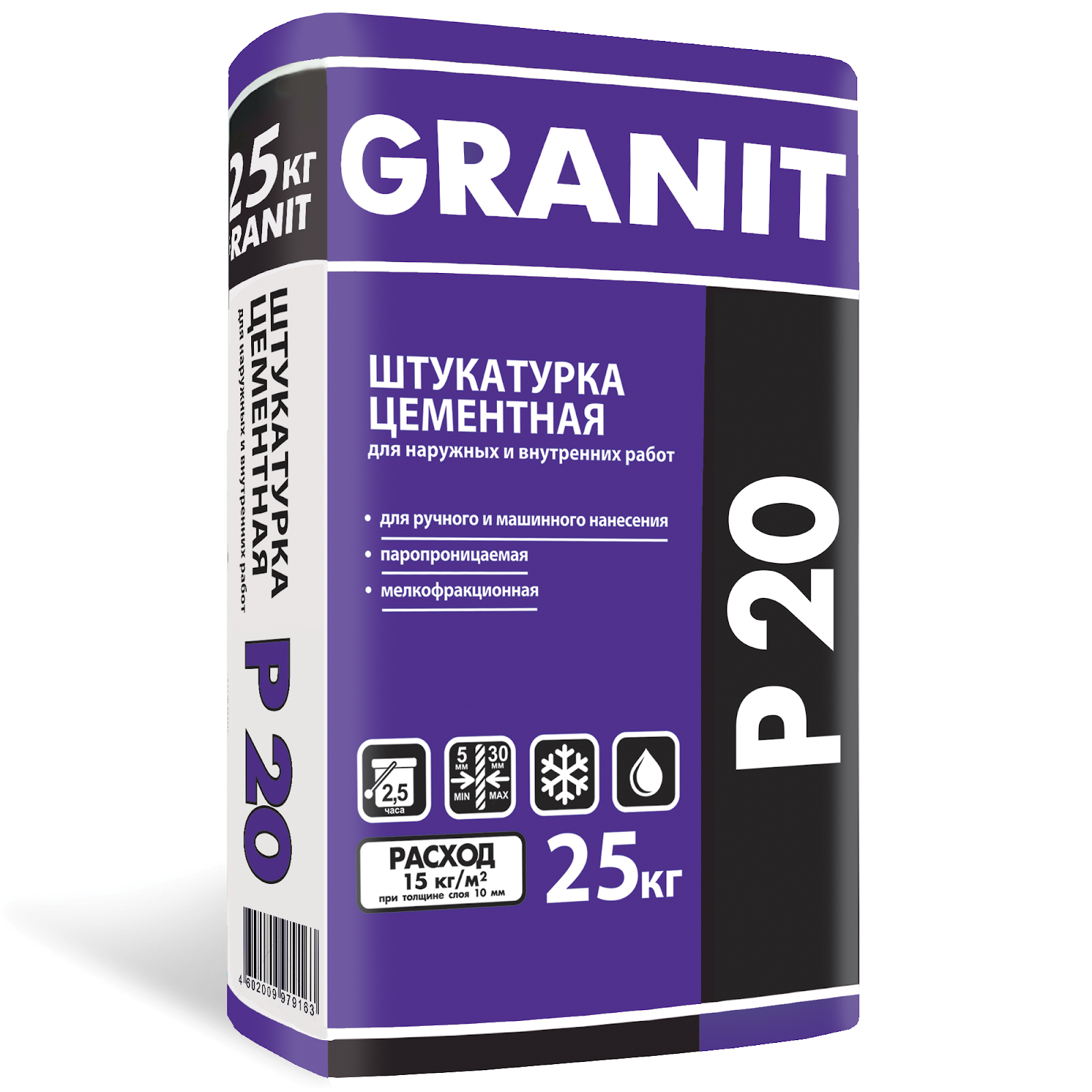 Штукатурка цементная GRANIT P-20 25 кг для вн./нар.работ
